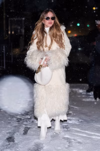 Denim played a central role, styled in ways that worked for chilly weather without feeling bulky or stiff — a reminder that winter outfits can still feel light and flexible.